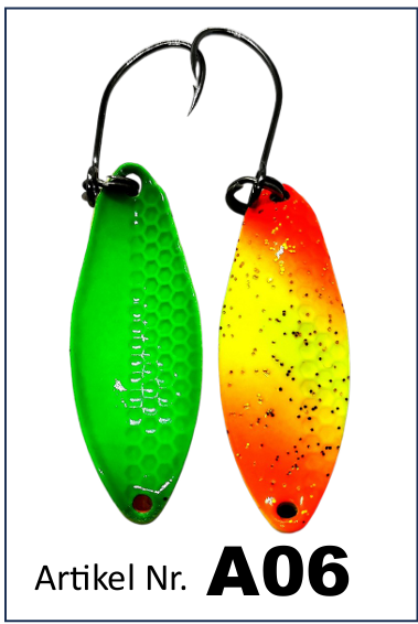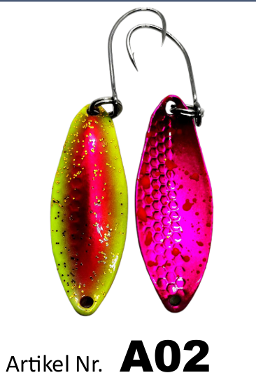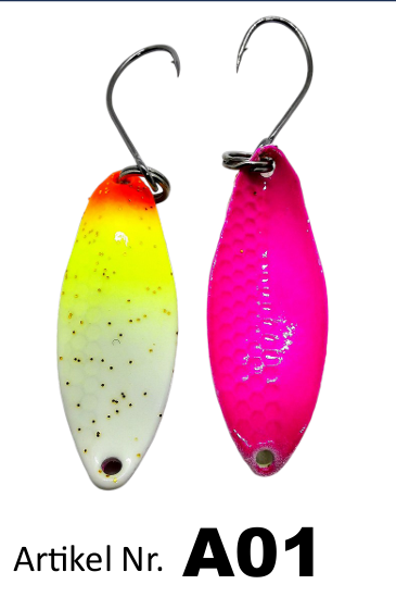 Den ene halvdel af blinket er udstyret med flere optiske udskæringer, som under indspinning skaber en særlig visuel effekt i vandet. Sammen med blinkets karakteristiske gang gør det det yderst effektivt – selv over for træge ørreder.